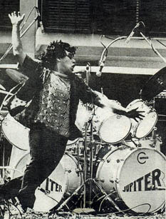 For various reasons -- both, legal and otherwise, only the first names will be used in this document, but for those of you who remember... this is what happened. ![]() ![]() The Band that Killed Disco?Circa 1977 three southern California musicians Jay, Tim and Lorenzo, formed a power trio named Jupiter. Originally a cover band they entertained at numerous venues such as, fraternity "beer busts," local nightclubs, beer joints and numerous other dives... Though a cover band, their cover music never quite sounded right -- it was ragged and rough -- a style of music often referred to as "garage." Indeed their garage characteristics seemed to surface in any type of music that they played.Some of their formative performances were at numerous beer bashes for the Sigma Alpha Epsilon fraternity at Long Beach State -- this is the fraternity that became the "Animal House" of the University -- at one point placed on probation for lewd and lascivious conduct in their neighbors' yards... ![]() ![]() ![]() ![]() A truly bizarre musical genre' for Jupiter to attempt was disco. Though not a disco band, Jupiter, driven by demand and desire to find paying gigs attempted to play disco, but what came out was truly unique -- too fast, unfunky and LOUD. At the "Point After," a famous valley disco club Jupiter stunned the crowd with their rendition of disco, which was anything but enjoyed by the hardcore, flamably attired disco set, however, a booking agent, Bobby M., who looked like a character from an old Bogart film saw them and decided that they would be perfect for entertaining at military bases, thus began another weird chapter in the Jupiter story. By this point Jupiter had temporarily become a foursome -- adding Tony to the band on keyboards. ![]() ![]() A thousand drunk soldiers...Bobby's first booking for Jupiter was El Toro Marine Base. The band showed up and was somewhat taken aback to find that their audience consisted of 1000 drunk male Marines. Only two women were there, serving drinks. The crowd was not especially pleasant -- at one point Lorenzo had asked if anyone ever danced at these little suares... the reply came back from a tough looking soldier in the crowd proclaiming. "Sir we're Marines, we don't dance, we kill sir!" This turned out to be one in a large number of unusual venues.![]() ![]() Original MusicBy 1979 the band had grown weary of the cover scene and began creating original music. Around the same time a new music scene was beginning to emerge in LA. The music was the forerunner to today's "Alternative" and was diverse and heavily influenced by the simplicity and attitude of "Punk" and the POP sounds of the 1960's. Some called it "new wave," others called it "punk," yet others called it "pop." It was also raw, rough and unrefined -- very similar to the garage sound that Jupiter had almost perfected. Tim was extremely excited about this new music scene because of it's 60's characteristics -- since most of his original material had 60's style chord progressions and a definite 60's feel. Lorenzo was an odd wheel -- insisting on playing a Rickenbacker 12 string that sounded like a "buzz saw with a twang" through most of the 70's and possessing an unusual stage arrogance -- at last there appeared to be a genre' that would allow easy adaptation of his happy twangy "Rick." Jay, with his huge white double-bass Camco drum set, and always a fan of theatre saw this period as an opportunity to explore the mingling of theatrics and rock. He also found a way of introducing some of his more original rythmns. Jay, Tim and another and another Mike, also a friend of Jay's who was known for enjoying unusual antics and loved being the center of attention soon came up with some bizarre senarios to give the band a different character.The "Multiple Choice" Album...![]() ![]()