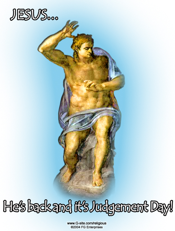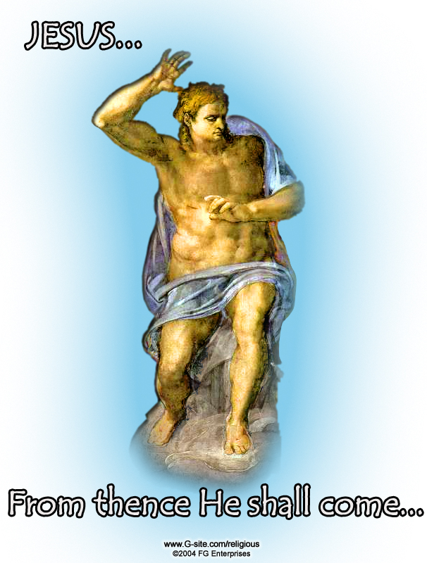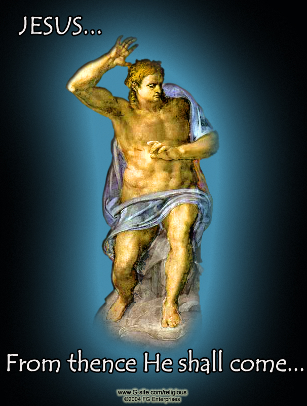 Adapted from Michelangelo's Last Judgement. His crucifixion was the ultimate sacrifice. He preached a message of peace and love. Michelangelo's "Last Judgement"  depiction shows a powerful Christ passing judgement.