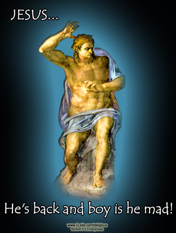 Adapted from Michelangelo's Last Judgement. His crucifixion was the ultimate sacrifice. He preached a message of peace and love. Michelangelo's "Last Judgement"  depiction shows a powerful Christ passing judgement.